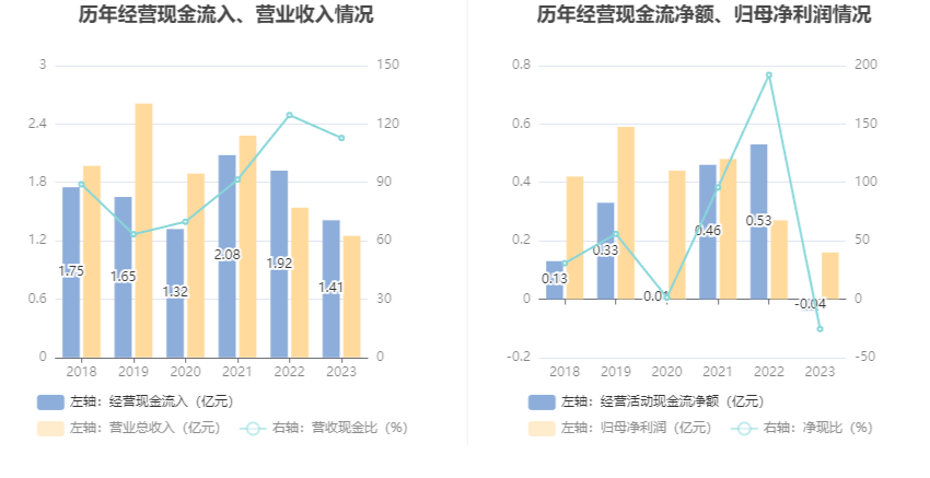 2023年,公司计算行径现款流净额为-399.55万元,同比减少5655.65万元;筹资行径现款流净额-1888.78万元,同比增多2079.80万元;投资行径现款流净额-4458.15万元,上年同时为-1.15亿元。