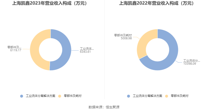 分居品来看,2023年公司主贸易务中,工业流体分离处置决策收入6343.61万元,同比下落38.99%,占贸易收入的50.90%;零部件及耗材收入6119.17万元,同比增长22.16%,占贸易收入的49.10%。