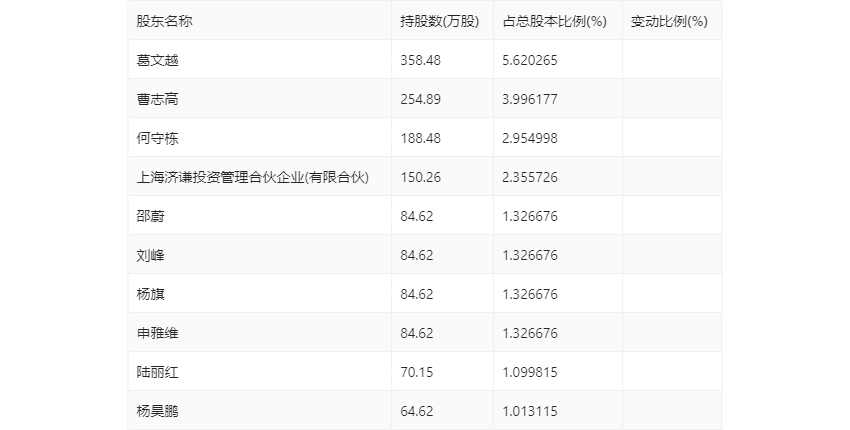 年报潜入,2023年末的公司十大通顺鼓吹中,新进鼓吹为葛文越、上海济谦投资不断联合企业(有限联合)、邵蔚、刘峰、杨旗、申雅维、陆丽红、杨昊鹏,取代了三季度末的中国海外金融香港钞票不断有限公司-FT、叶苏灵、王洁、光大证券(维权)股份有限公司、中信证券股份有限公司、孙巧妹、马啸、顾张桃。在具体抓股比例上,曹志高、何守栋抓股有所飞腾。