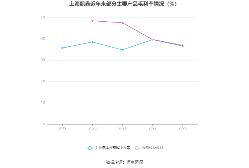 分居品看,工业流体分离处置决策、零部件及耗材2023年毛利率分裂为37.01%、36.68%。