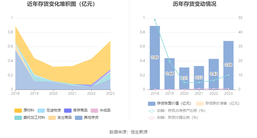 从存货变动来看,法例2023年年末,公司存货账面价值为6812.44万元,占净钞票的10.31%,较上年末增多2496.52万元。其中,存货跌价准备为35.91万元,计提比例为0.52%。