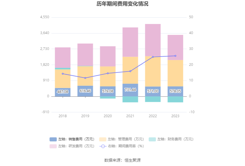 2023年,公司本领用度为3197.29万元,较上年同时减少647.91万元;但本领用度率为25.65%,较上年同时飞腾0.69个百分点。其中,销售用度同比增长1.23%,不断用度同比下落12.9%,研发用度同比下落22.08%,财务用度由旧年同时的-321.39万元变为-342.18万元。