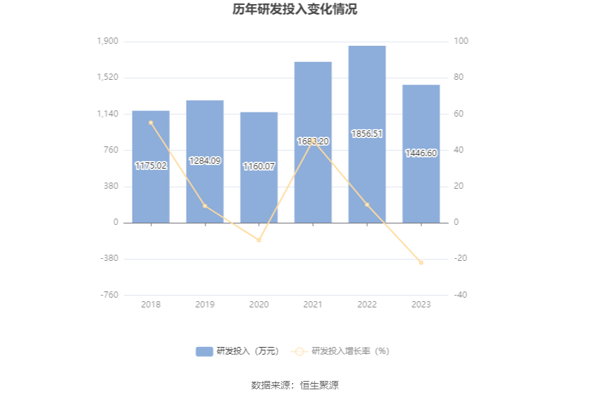 2023年全年,公司研发进入金额为1446.60万元,同比下落22.08%;研发进入占贸易收入比例为11.61%,比拟上年同时下落0.44个百分点。此外,公司全年研发进入成本化率为0。
