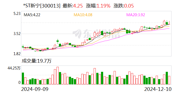 12月10日,*ST新宁(维权)在投资者互动平台示意,公司在郑州航空港区开荒有子公司并开展仓储物流业务。现在,尚未波及“中欧班列”业务,后续如有关系业务开展,请以公司在指定信息露馅媒体上发布的公告信息为准。