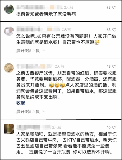 职责主谈主员并莫得径直回复“开瓶费”的说法